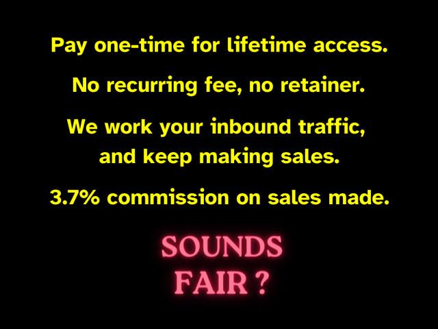 So our offer is simple to align incentives for the long term. We have a one-time fee, after which you get lifetime subscription. There's no recurring fee or monthly retainer. We get paid when you get paid - whenever our software makes a sale, we invoice you a flat 3.7% commission on the total sale made.